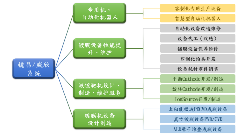 专业真空镀膜设备、自动化设计制造 整合服务 专业真空镀膜设备、自动化设计制造整合服务 公司简介 公司概况 技术研发奠基:2015年迄今资本额:80,000,000 NTD全世界优质真空镀膜制程设备系统的开发与制作各式精密真空镀膜设备系统代工,关键零组件的开发制作客制化加工件,自动化相关产业零组件加工 营业项目 真空溅镀、蒸镀设备设计、制造、专业服务。真空溅镀靶机(Cathode)设计、制造、专业服务。自动化设备设计、制造、专业服务。太阳能微波电浆CVD生产设备。光电半导体系统设备生产治具、传送载具设计制造。光电半导体系统性能提升、专业服务。相关零组件、安装、制造、维护服务。提供专业真空镀膜技术咨询服务设计、电控及制程工艺,分享技术信息。 经营理念 诚信合作基础 友善企业氛围 价格优势提升竞争 快速服务效率 技术同享共创双赢 产业模式 流程控管